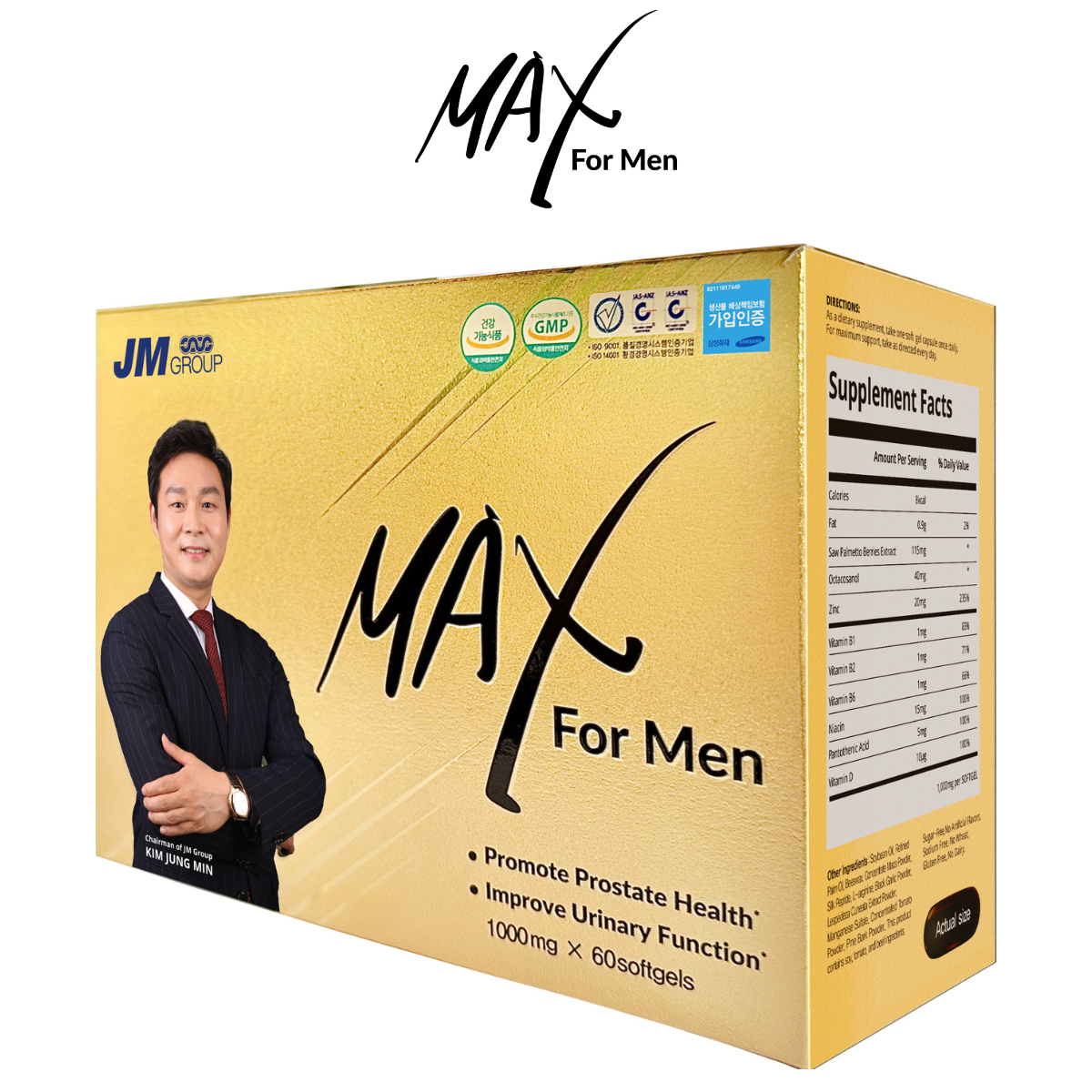 + Chiết xuất quả cây Cọ lùn 359.38mg, Octacosanol 40mg, Kẽm (Kẽm oxyd) 20mg, Niacin (Acid nicotinic) 15mg, Acid Pantothenic (D-pantothenat, calci) 5mg, Vitamin B1 (Thiamin Hydrochloride) 1mg, Vitamin B6 (Pyridoxin Hydrochloride) 1mg, Vitamin B2 (Riboflavin) 1mg, Vitamin D (Cholecalciferol) 10g;